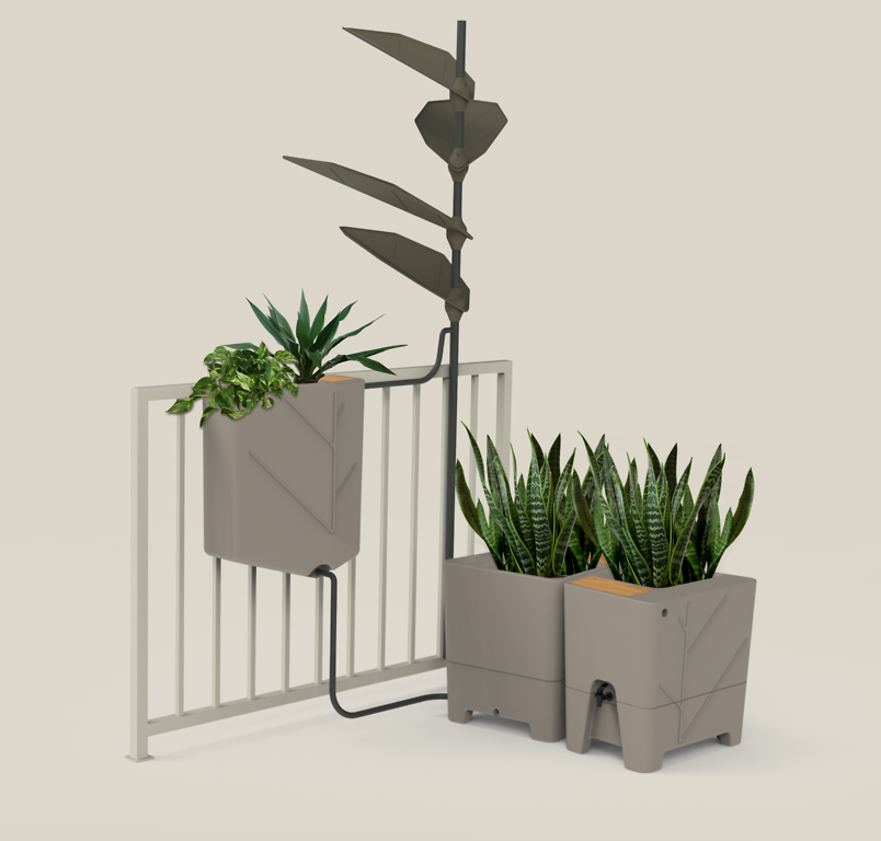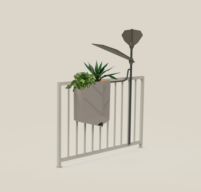 - Dopasowanie do przestrzeni miejskiej - działa nawet tam, gdzie nie ma rynny; łapacz w kształcie liści gromadzi deszczówkę bez dodatkowej instalacji.